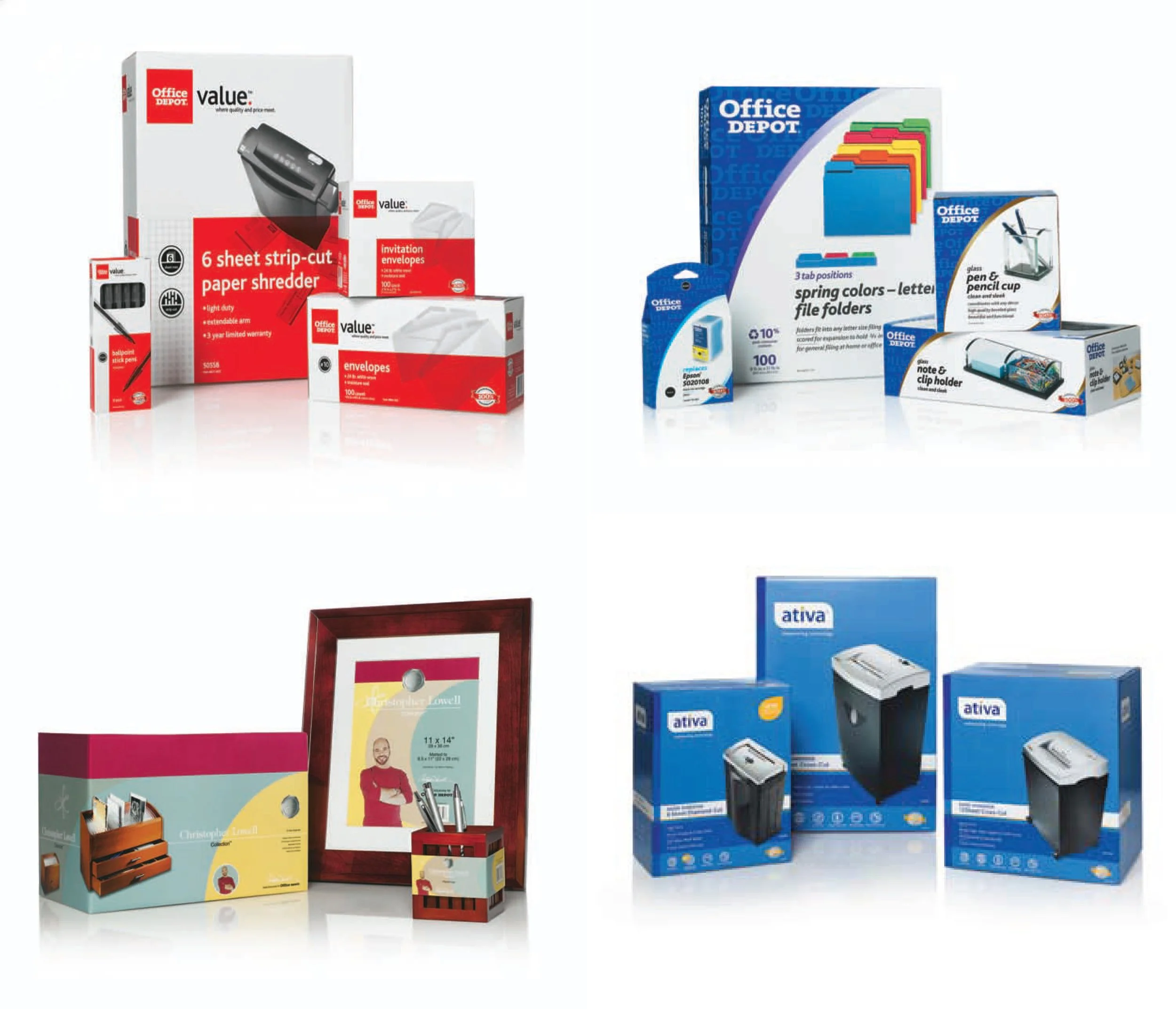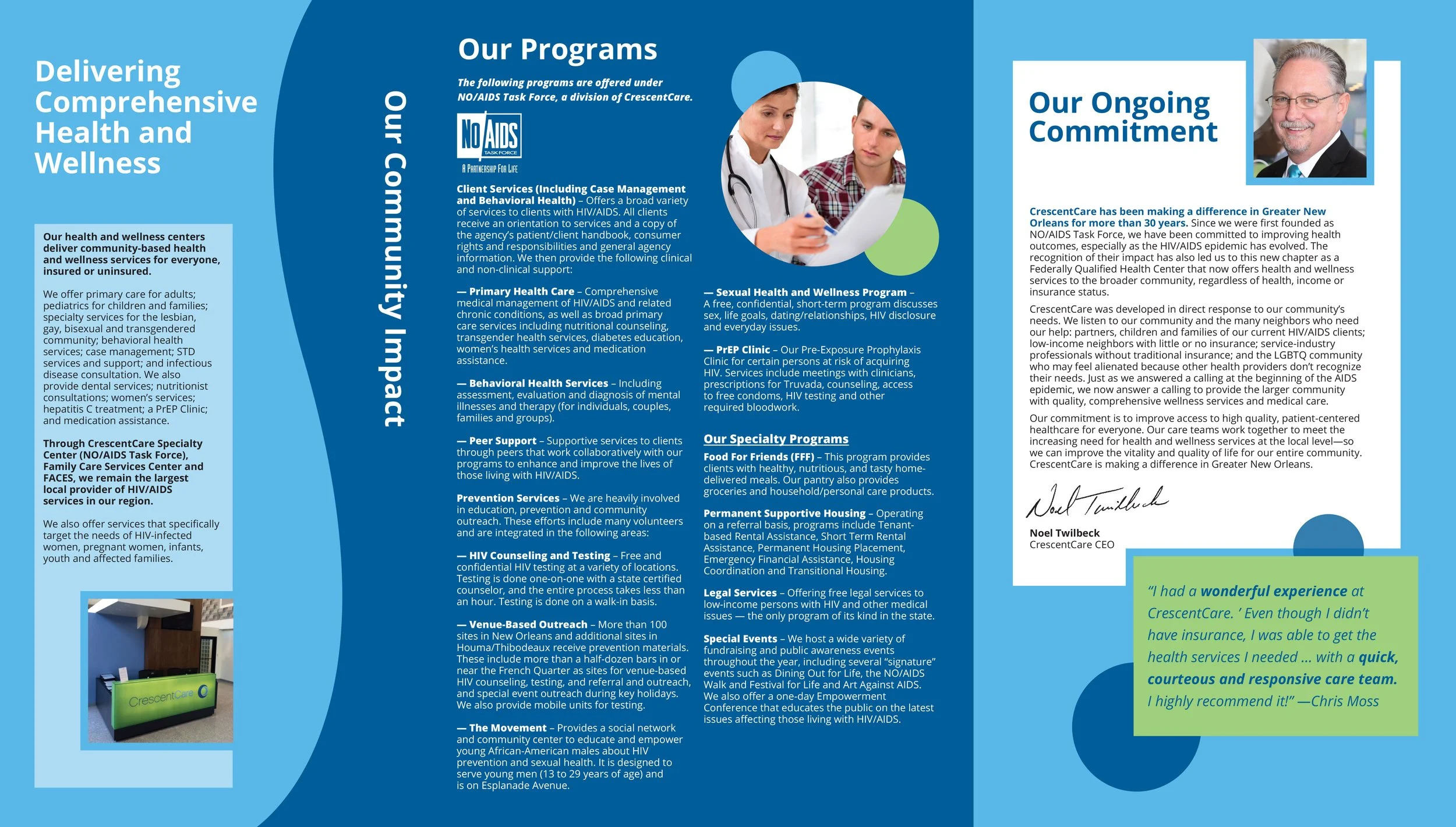 ABOVE: Four-panel brochures, with both front and back sides